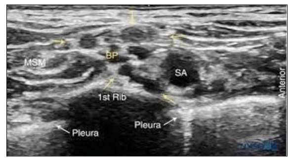 Among regional techniques, peripheral nerve blocks are valuable for limb surgeries due to their ability to interrupt pain pathways at specific anatomical sites. The supraclavicular brachial plexus block, in particular, is widely regarded as an effective and reliable method for providing anaesthesia and analgesia for upper limb surgeries below the shoulder joint [7-9].