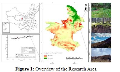 The study area is located in Maixiu National Forest Park (35°8'N–35°21'N, 101°46'E–102°04'E), situated in the Huangnan Tibetan Autonomous Prefecture of Qinghai Province, China. The park lies on the eastern edge of the Qinghai-Tibet Plateau, with an elevation range of 2699–4971 m (Figure 1). The experimental area falls within the park's managed zone and is characterized by a cold and humid climate, with an average annual temperature of approximately 5.8°C, annual precipitation of around 600 mm, and total annual sunshine duration of about 2600 hours [6,7].