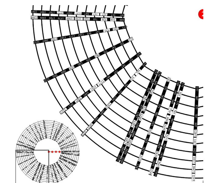 Figure 4c: After similar operation as in Figure 1-3, each prime number in [107, 157] can generate its own 11-element arithmetic progressions of prime numbers (with composite exceptions) with a common difference of 210 (= 2 x 3 x 5 x 7 = X5). Note that all numbers on the innermost circle are from Figure 3. Lower-left inset shows the position of the main figure in the whole figure. Modified from Wang [14].