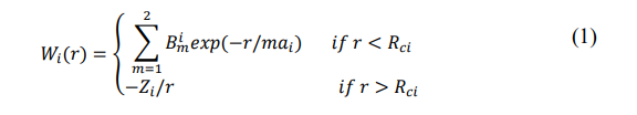 where a, Rci and Z denote the softness parameter, core radius and the effective s-electron occupancy number, respectively [15]. The term outside the core is just the bare Coulomb interaction (in atomic units) between a conduction electron and an ion. The contribution inside the core is contributed by the first two terms of the Dirichlet series arising from the inverse scattering approach. For details, see Ref [4,6]. The coefficients of expansion in the core depends on the parameters ai, Rci, and Zi. Finally, the partial interionic interaction between ith and jth ions is [16,17] .
