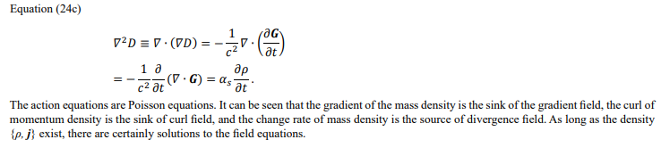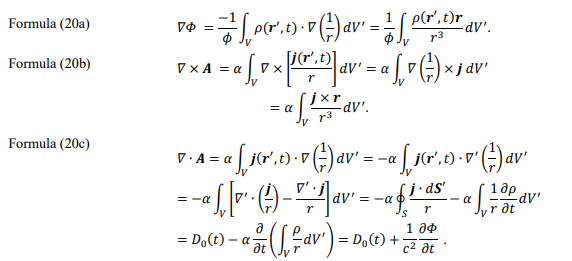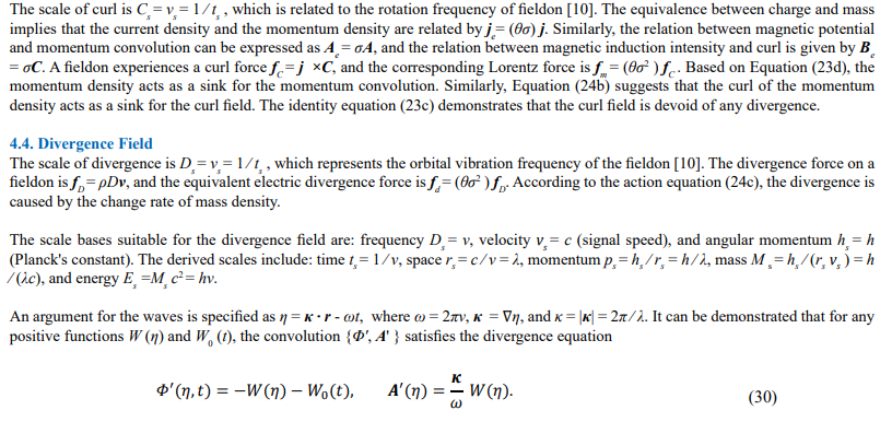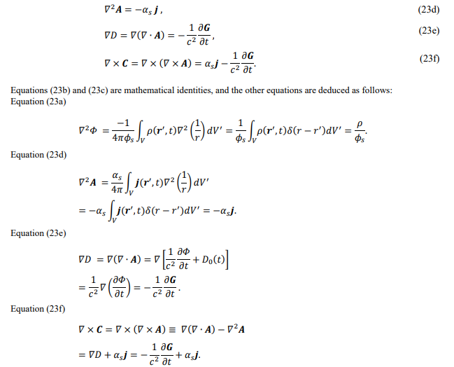 Convolution equations and electromagnetic field equations are alike in their forms. Eq. (23a) is similar to the Gauss theorem of electro- statics, and Eq. (23c) is similar to the Gauss theorem for magnetostatics. Eq. (23d) is comparable to Ampere law, Eq. (23e) is comparable to displacement current, and Eq. (23f) is comparable to Maxwell-Ampere law.