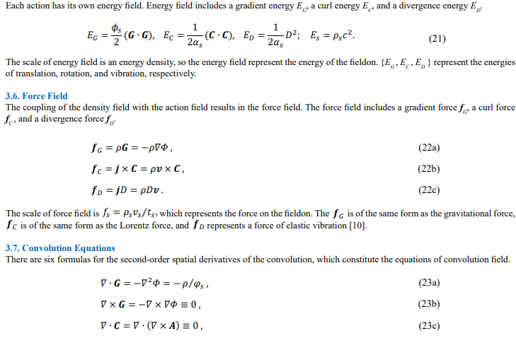 The convolution equations (23) encompass Maxwell's equations for the electromagnetic field. When we view the gravitational and electrostatic forces as gradient forces, we can equate charge with mass, electric field with gradient, magnetic induction with curl, and electromagnetic field with divergence. Due to the coverage of attraction and repulsion in the convolution field, weak and strong forces can be attributed to the combined effects of gradient forces, curl forces, and divergence forces.