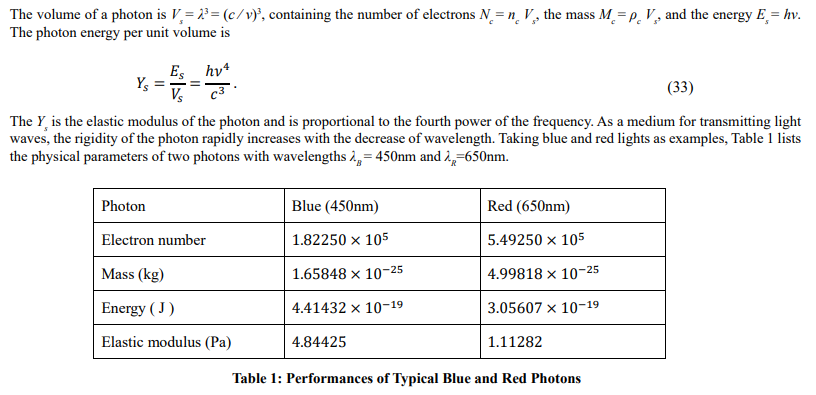 It follows that low-frequency photons are large and soft, and high-frequency photons are smaller and harder. The properties of the elec- tron fluid are very similar to those of the gravitation aether or luminiferous aether: enormous density, but little mass; incompressible, but no resistance; ubiquitous, but hard to detect.