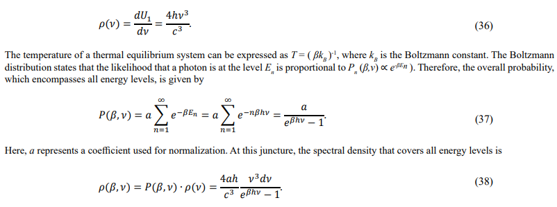 The above equation is known as the Planck radiation law. The coefficient a = 2π is determined by comparing it with the standard formula of the black-body radiation.