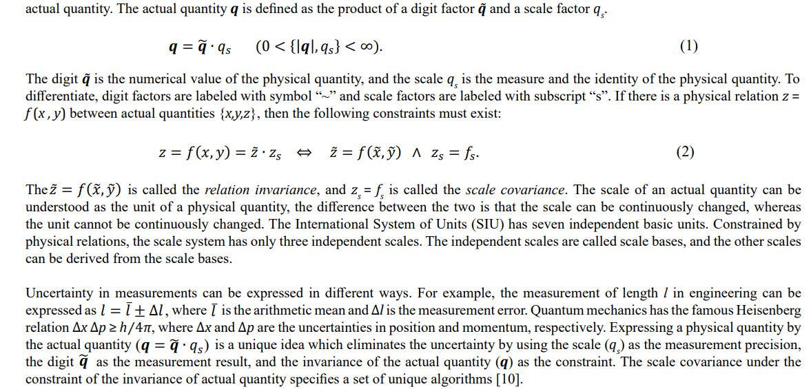 The limit precision of a physical measurement is called the scale, and the physical quantity expressed in terms of the scale is called the