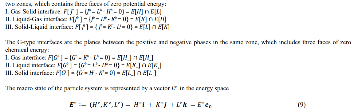 The current dominant theory in statistical physics is the Gibbs ensemble theory [16,17]. Gibbs' theory gives the microcanonical, canonical, and grand canonical distributions of energy in the Γ-space for the isolated, closed, and open systems, respectively. For quantum systems, Gibbs statistics requires transition to quantum distributions (Fermi-Dirac and Bose-Einstein distributions). The difficulty of Gibbs statistics lies in the integration of the potential energy function in the Γ-space. Potential energy represents the interaction of particles, and due to the lack of a unified form of interaction, it is impossible to draw universal conclusions. Real particle theory has constructed the energy space, determined the equilibrium surface and its quantum properties, and the introduction of particle interactions is the next step in the completion of particle statistics.