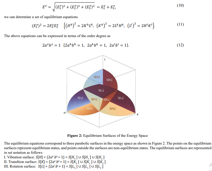 Where {D, T, B} are the motion strengths, and {h, k, l} are coefficients for unit transformation. In the SIU system, the energy unit is joule (J). If the vibration strength uses the divergence D (in Hertz, Hz), the coefficient h = 6.6260693 × 10-34 J/Hz is the Planck constant [10]. The translation strength uses the thermodynamic temperature T (in Kelvin, K), and the coefficient k = 1.3806506 × 10-23 J/K is the Boltzmann constant. The rotation strength uses the magnetic induction strength B (in Tesla, T), then, the coefficient l = 9.274 ×10-24 J/T is the constant of Bohr magneton. Since the motion energies {H, K, L} are positive definite, the following conclusions are obviously