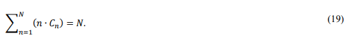 Intercept the system's configuration at time t = τ . ts and count the number of C(n) in the configuration, denoted as Cn. The N-dimensional vector Cτ = (C1, C2 , C3 , ..., CN ) is known as the distribution vector of midsons. Figure 3 illustrates an instantaneous configuration of a system where the number of basons N = 14, the number of midsons V =