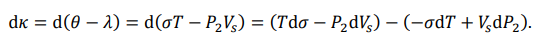 According to equations (34) and (38), the rotational and thermal energies of a midson are λ = P2 Vs and θ = σT, respectively. Since κ = θ - λ, we express the differential of the translation energy as
