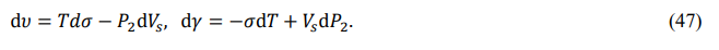 Also, since κ = υ - γ and dκ = dυ - dγ, we obtain the differentials of the internal energy and chemical energy