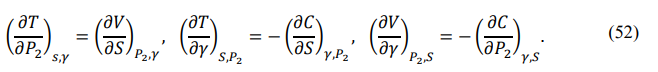 Partial derivative relations between state functions are important tool in the study of thermodynamic processes. According to the sufficient conditions for complete differentiation, each total differential equation corresponds to a set of partial differential relations called Maxwell relations [17]. For example, the total differential of the thermal energy is