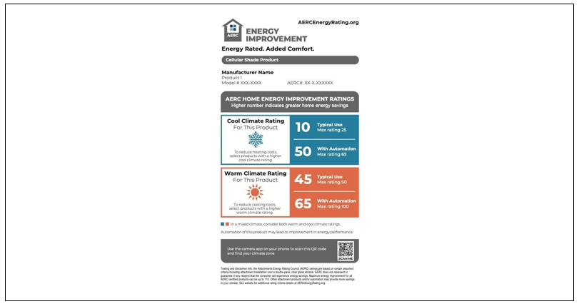 AERC stands for the Attachment Energy Rating Council. AERC is an independent, public interest, non-profit organization dedicated to rating, labeling, and certifying the energy performance of residential and commercial Window Fashion products.
