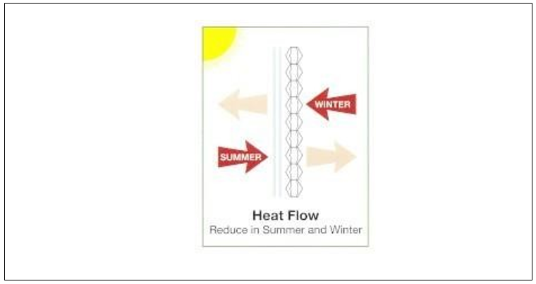 Figure 10: Heat Flow through a Double-Pane Window and A Cellular Shade Depicting Reduced Heat Gain in Summer and Heat Loss in Winter