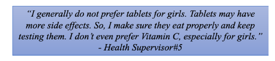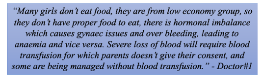 • Not Identifying Girls with Heavy Bleeding: Girls with heavy bleeding either do not report to the health supervisors about it or it is not being noted or treated properly. This is one more challenge which is basically leading to increase in num- ber of anaemia cases in the girl students.