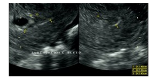 Figure 6: ultrasound imaging of 2.4cm sub-chorionic bleed