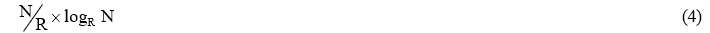 The radix-R version of the fixed-radix FFT is a recursive algorithm that’s obtained from the breaking down or decomposing of the original problem of the length-N transform – and, in similar fashion, of each of the resulting sub-problems – into R smaller sub-problems each with size being subsequently reduced by a factor of 1/R. The end result of such a decomposition is the conversion of the original problem, namely that of a single length-N transform, into logRN computational stages, where each stage comprises N/R independent CUR’s and where the execution of a given stage can only commence once that of its predecessor has been completed, so that the FFT output is produced on completion of the final computational stage. Thus, the recursive decomposition of the original length-N transform results in a total of