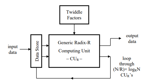 Figure 1: Sequential Processing Architecture for Length-N Radix-R FFT