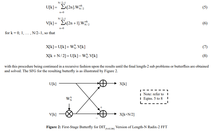 for k = 0, 1, … , N/2–1, with this procedure being continued in a recursive fashion upon the results until the final length-2 sub-problems or butterflies are obtained and solved. The SFG for the resulting butterfly is as illustrated by Figure 3.