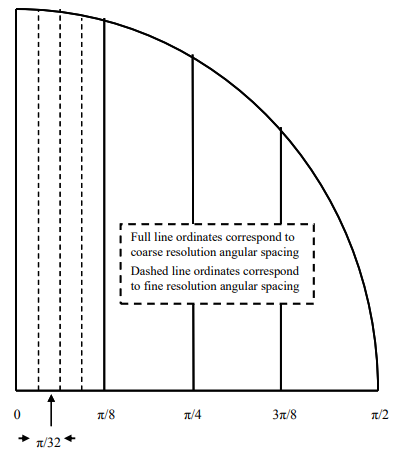 to the angle defined over a ‘fine resolution’ angular region – see the simplified illustration of Figure 8 for the decomposition of the cosine function into coarse-resolution and fine-resolution angular regions, each of length 4.