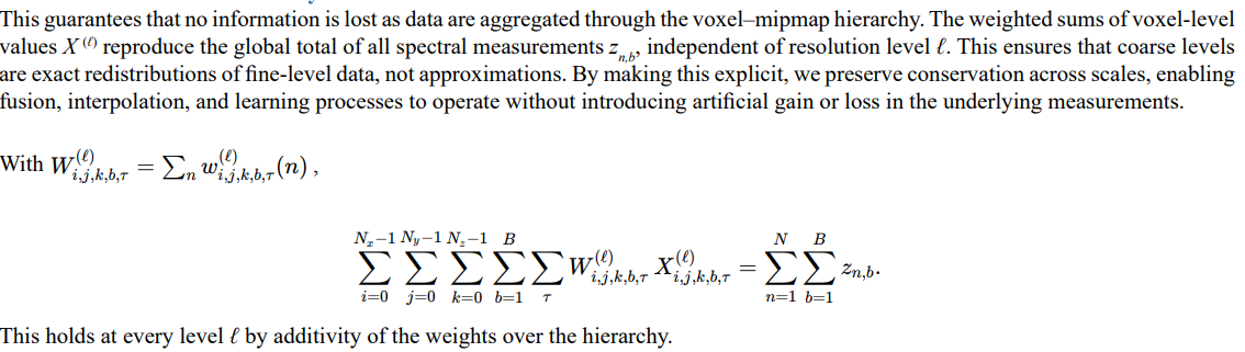 Attempts at unifying spatio-temporal-spectral data structures can be grouped into three broad categories. The first category is volumetric stores, such as voxel grids, octrees, and their multi-resolution derivatives. These approaches are effective for spatial partitioning and memory efficiency, particularly when handling large image stacks, LiDAR scans, or SAR volumes, and they enable hierarchical querying. However, they require all incoming samples to be discretized into a fixed volumetric lattice. This resampling erases the native footprint, anisotropy, and statistical properties of the original measurements, reducing their utility for estimation-theoretic operations.