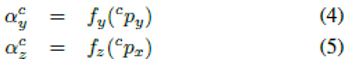 where fy and fz are the functions that convert pixel length to angle along y and x axes of the image using the field of view and the pixel density of the camera. As shown in Figure.9, the homogeneous coordinates of the plant with respect to the camera are as follows.