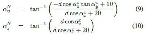 Then, the two spherical coordinates (pan-tilt) of the nozzle to aim at the plant are as follows.