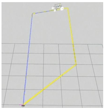 Figure 11 shows the motion in the RVIZ visualizer while the robot was moving on the ground. The mean and variance of the robot’s path were calculated as 7cm and 25cm respectively. The fact that the motion shows a larger variance compared to the mean error is expected because of the free swinging of the front caster wheels. These two caster wheels quickly move when they go over ground imperfections, causing a higher variance in the path error.