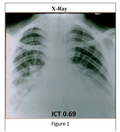 The chest X-Ray shows important enlargement of the heart with pulmonary edema (Figure 1).