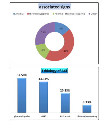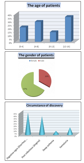 The circumstances of discovery in the majority of our patients being revealed by digestive signs (diarrhea, vomiting) and that related to the etiology of AKI (HUS post diarrhea).