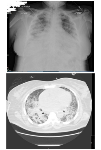 Our case is a 56-year-old female, a care home nurse, who present¬ed with a week history of fevers, cough and shortness of breath. Her symptoms persisted and as per National Health Service (NHS) guidance she began self-isolation. She presented to the hospital after her symptoms progressed and found it difficult to breath with admission oxygen saturations of 64% on room air. A nasopharyn-geal swab for SARS-CoV-2 PCR was positive on admission. Her background medical history included hypertension, Type 2 diabe¬tes mellitus, chronic kidney disease since 2017 with a baseline of creatinine 142umol/L.