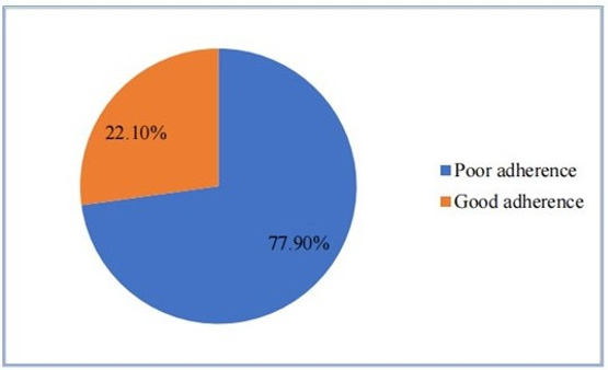 Figure 1: Level of adherence among hypertensive patients on follow up at Asella Referral and Teaching Hospital, 2021