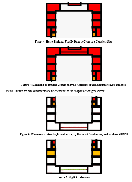 Additionally, this invention addresses potential future issues. For example, drivers following person with adaptive cruise control (ACC) might become desensitized to braking cues due to constant automatic braking for small speed adjustments. Adilights counters this by making every braking action noticeable.