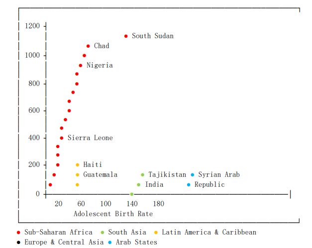 Figure 1: Maternal Mortality vs. Adolescent Birth Rate by Region