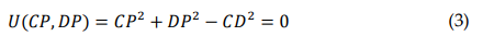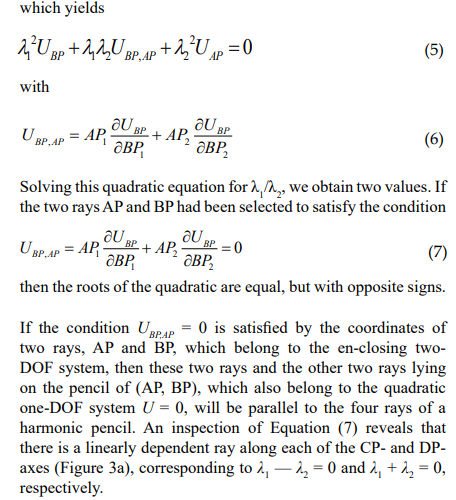 which is the homogeneous relation of the circle between two coordinates of CP and DP of the paths. These constitute a quadratic one-DOF system. Let CP and DP denote any rays other than AP and BP and chosen from the enclosing two-DOF system from which the rays of the quadratic one-DOF system are selected by the condition U = 0.