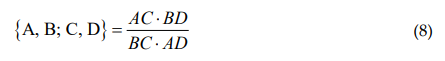 Just as the length of a line segment is the key to metric geometry, there is a fundamental concept of projective geometry in which all the distinctive properties of projective figures can be expressed [47]. Shape constancy depends on perspective, and the visual system operates on the projective principle of perspective. For James Gibson, the equality of cross ratios implies shape constancy [48]. Followers of James Gibson have proposed that the cross ratio, a projective invariant for four collinear points, underlies the perception of objects in motion [49]. According to the seminal discovery of projective geometry, if we have four points A, C, B, and D on a straight line and project them onto A´, B´, C´, and D´ on another line, then there is a specific property of the four points, called the cross ratio, which retains its value under the projection. The cross ratio is neither a length nor the atio of two lengths but the ratio of two such ratios. For instance, for two ratios, AC/BC and AD/BD, the cross ratio is given by