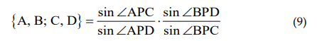 The problem of intercepting a target that moves in the horizontal plane is conceived as the cross ratio of four coplanar (i.e., lying in a common plane) and concurrent straight lines PA, PB, PC, and PD, namely, the four points of intersection cross ratio of these lines with another straight line lying in the same plane (Figure 4). For an arbitrary point P and a harmonic range [23], the lines PA, PB, PC, PD are said to form a harmonic pencil, a linear line space where paths are centrally placed at the point P. Line space denotes a set where linear com-binations also locate lines in the set [50].