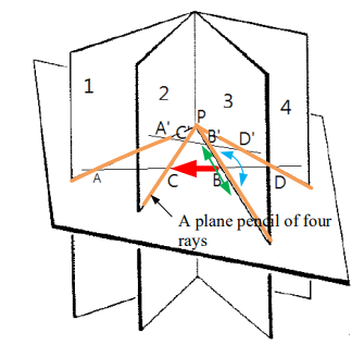 Additionally, by considering the concept of affordances in conjunction with the analysis of the cross ratio, individuals can optimize their interception strategies and enhance their ability to intercept moving objects effectively. The cross ratio an invariant in projective geometry, remains constant under projective transformations. For two screws with infinite pitch (pure translations) that are parallel to the four rays of a harmonic pencil, achieving a cross ratio of -1 indicates a harmonic relationship that signifies equilibrium.