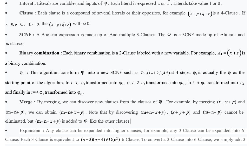 Binary combinations are the basis of our algorithm. Binary combinations are the set of all 2-Clauses that can be obtained from n literals of φ . The number of binary combinations is 4n2 . We labele each binary combination with a new variable like