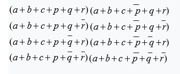 ( A1 + A2 )( A1 +A3 )( A2 + A3 )( A1 + A6 )( A2 + A5 )( A3 + A4 )