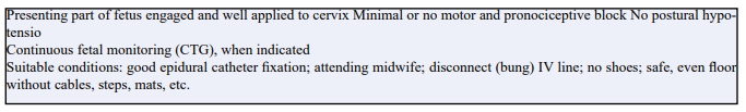 Table 9.2 Requirements for safe ‘walking epidurals’ in labour Cooperative, understanding parturient