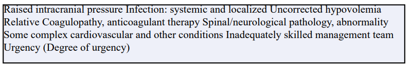 Table 9.3 Contraindications to neuraxial blockade Absolute Patient refusal