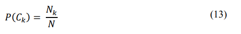 The probabilities P(Ck) and P(xj | Ck) need to be estimated from the training data and the prior probability of class Ck is estimated as: