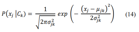where µjk and σjk2are the mean and variance of the feature xj for class Ck.