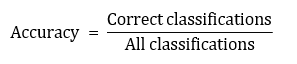 • Accuracy (Equation 15) - to measure how many correct classifications we get.