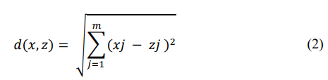 Then we can calculate a distance metric, typically using the Euclidean distance d between two points x and z defined as