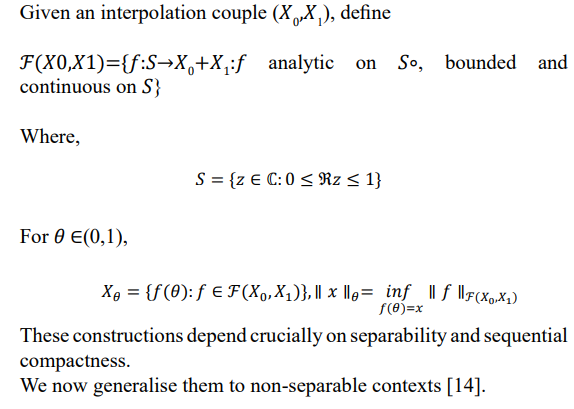 c) Interpolation difficulties: the construction of interpolation spaces relies on density arguments and approximation by sequences, which are unavailable in NSBS. For example, the real interpolation functor fails to preserve expected embeddings when applied to non-separable couples [3].