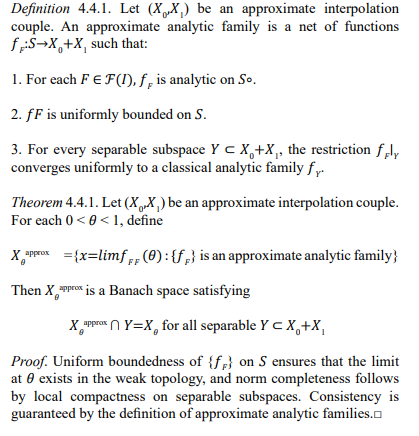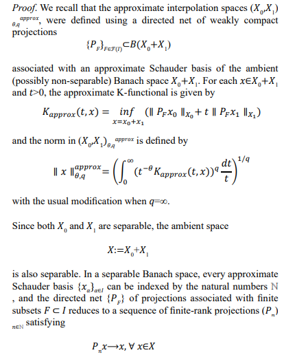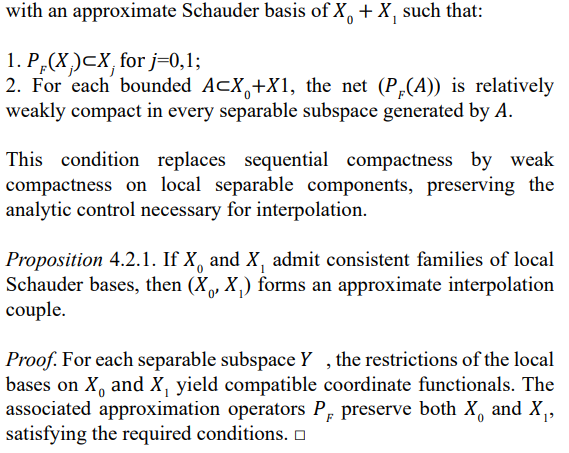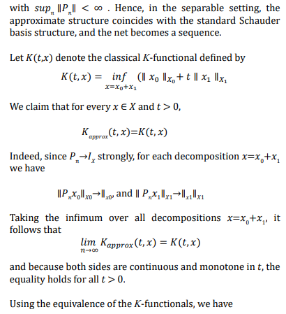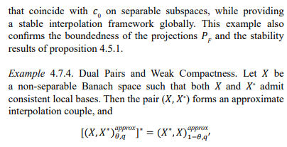 In the next section, we extend this philosophy to the theory of interpolation, demonstrating how real and complex interpolation schemes can be reconstructed in nonseparable settings by exploiting the weak compactness and consistency of approximate bases.