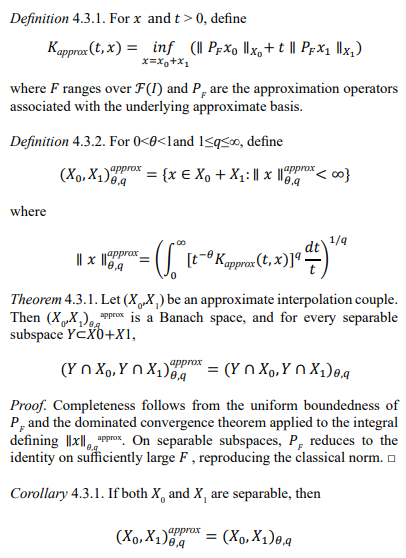 2. Proof of equivalence between approximate and classical interpolation spaces on separable subspaces.