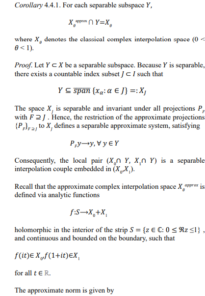 2. Together with corollary 4.5.1 for real interpolation, this ensures that both real and complex interpolation functors extend canonically from separable to non-separable Banach spaces without altering their behaviour on separable subspaces.