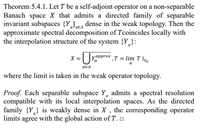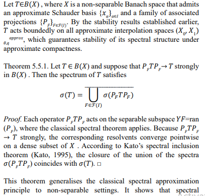 This theorem generalises the classical spectral approximation principle to non-separable settings. It shows that spectral information can be reconstructed from local separable projections, bridging the gap between finite-dimensional truncations and global non-separable operators.
